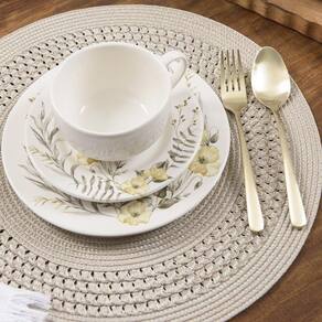 Jogo Americano Copa E Cia Avulso Luna Tressê Vanilla Jogo Americano Copa e Cia Avulso Luna Tressê Vanilla - Peça avulsa Características Gerais do Produto: - Composição: 75% Polipropileno (Plástico) e 25 % Poliéster. - Detalhes: Flexível.; Peça Vendida de Forma Avulsa (Individual).; São práticas e versáteis - Cuidados: Evitar contato com objetos cortantes ou superaquecidos.; Não amassar; Não torcer ou dobrar totalmente o produto.; Não utilizar solventes, abrasivos ou alvejantes.; Limpar manualmente com pano úmido e detergente neutro. - Dimensões (cm): Diâmetro: 38 cm Acompanha o produto: - 1 Peça de Jogo Americano Garantia: - Sem Garantia