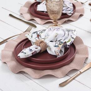 Jogo Americano Copa E Cia Avulso Luna Wave Rosê Jogo Americano Copa e Cia Avulso Luna Wave Rosê - Características Gerais do Produto: - Composição: 75% Polipropileno (Plástico) e 25 % Poliéster. - Detalhes: Flexível.; Peça Vendida de Forma Avulsa (Individual).; Design Exclusivo Copa&Cia.; Armazenar o produto aberto e na horizontal; São práticas e versáteis; As cores podem sofrer pequenas alterações de cor, variando de monitor para monitor.; Os objetos que ambientam as fotos não acompanham o produto.; As fotos produzidas são apenas como sugestão de uso com as demais peças da coleção. - Cuidados: Evitar contato com objetos cortantes ou superaquecidos.; Não amassar; Não torcer ou dobrar totalmente o produto.; Não utilizar solventes, abrasivos ou alvejantes.; Limpar manualmente com pano úmido e detergente neutro. - Dimensões (cm): Diâmetro: 38 cm Acompanha o produto: - 1 Peça de Jogo Americano Garantia: - Sem Garantia