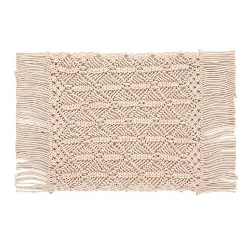 Jogo Americano Copa E Cia Avulso Macramê Zoe Jogo Americano Copa e Cia Avulso Macramê Zoe - Características Gerais do Produto: - Composição: 100% Algodão. - Detalhes: Possui Detalhe com Franjas.; Produzido na Índia.; Peça Vendida de Forma Avulsa (Individual). - Cuidados: Não Utilizar Solventes ou Abrasivos.; Não Limpar a Seco.; Lavar Manualmente; Não Alvejar; Não Passar; Não Secar em Tambor - Dimensões (cm): Largura: 35 cm; Comprimento: 45 cm Acompanha o produto: - 1 Peça de Jogo Americano Garantia: - Sem Garantia