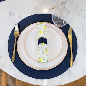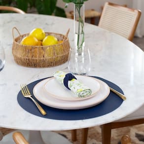 Jogo Americano Copa E Cia Avulso Ravena Redondo Marinho Jogo Americano Copa e Cia Avulso Ravena Redondo Marinho - Características Gerais do Produto: - Composição: 100% PVC. - Detalhes: Produto produzido no Brasil.; Textura de Couro.; Peça Vendida de Forma Individual.; Design Exclusivo Copa&Cia.; As cores podem sofrer pequenas alterações de cor, variando de monitor para monitor.; Os objetos que ambientam as fotos não acompanham o produto.; As fotos produzidas são apenas como sugestão de uso com as demais peças da coleção. - Cuidados: Armazenar em local seco e arejado.; Não Passar; Evitar contato com objetos cortantes ou superaquecidos.; Não molhar; Não amassar; Não torcer ou dobrar totalmente o produto.; Não utilizar solventes, abrasivos ou alvejantes.; Limpar manualmente com pano úmido e detergente neutro. - Dimensões (cm): Diâmetro: 38 cm Acompanha o produto: - 1 Peça de Jogo Americano Garantia: - 7 dias/30 dias contra defeito de fabricação