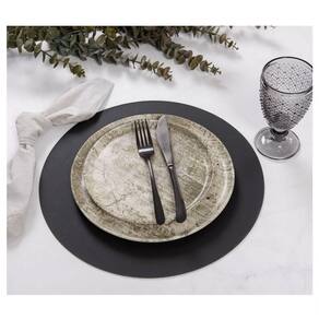 Jogo Americano Copa E Cia Avulso Ravena Redondo Preto Jogo Americano Copa e Cia Avulso Ravena Redondo Preto - Características Gerais do Produto: - Composição: 100% PVC. - Detalhes: Textura de Couro.; Design Orgânico.; Jogo Americano Avulso - Cuidados: Limpar Manualmente, Armazenar em Local Seco e Arejado.; Não Torcer, Amassar, Dobrar ou Molhar Totalmente o Produto.; Evitar Contato com Objetos Cortantes.; Não Utilizar Solventes ou Abrasivos.; Limpar com Pano Úmido e Detergente Neutro, Utilizando Flanela ou Esponja do Lado Macio. - Dimensões (cm): Diâmetro: 38 cm Acompanha o produto: - 1 Peça de Jogo Americano Garantia: - Sem Garantia
