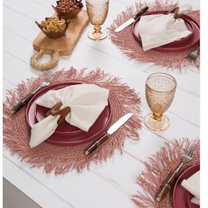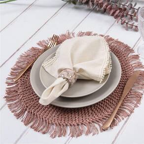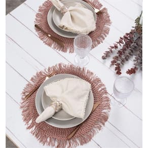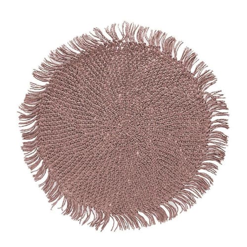 Jogo Americano Copa E Cia Avulso Tulum Rosê Jogo Americano Copa e Cia Avulso Tulum Rosê - Características Gerais do Produto: - Composição: 100% Fibra de Papel - Detalhes: Apesar de sua Composição ser a Base de Papel, o Produto não é Descartável.; Peça Vendida de Forma Avulsa (Individual).; Franjas nas Bordas.; Armazenar o produto aberto e na horizontal - Cuidados: Limpar Manualmente, Armazenar em Local Seco e Arejado.; Não Torcer, Amassar, Dobrar ou Molhar Totalmente o Produto.; Evitar contato com objetos cortantes ou superaquecidos.; Não utilizar solventes, abrasivos ou alvejantes.; Limpar apenas com pano úmido. - Dimensões (cm): Diâmetro: 35 cm Acompanha o produto: - 1 Peça de Jogo Americano Garantia: - Sem Garantia