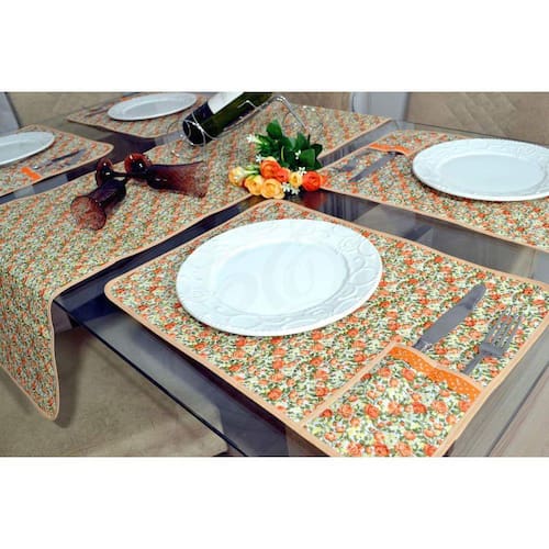 Jogo Americano e Caminho Matelado com 9 peças - Floral Laranja