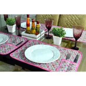 Jogo Americano Matelado com 10 Peças - Floral Rosa Pink