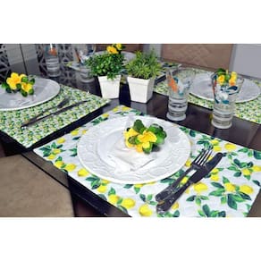 Jogo Americano Matelado Dupla Face 6 Peças - Limão SicilianoLindo lugar americano que deixará sua mesa um encanto Jogo americano dupla face fabricado em tecido matelado e estampado, com estampa de limões sicilianos, com fundo branco e com tons de amarelo e verde, sendo de um lado com estampas maiores e do outro lado estampas menores.Esse jogo americano é uma excelente opção para deixar a hora da refeição mais bonita, pois seu design e estampas unem a modernidade e sofisticação em uma só peça. Além disso, os jogos são práticos para utilizar em sua mesa, pois não ocupam muito espaço e têm um estilo único. Utilizar peças decorativas feitas artesanalmente garantem um charme a mais para qualquer residência. Deixe suas refeições mais bonitas com essa peçaFormado por: - 6 lugares americanos dupla face 0,48m x 0,33mComposição: - 70 % poliéster - 30% algodão - enchimento 100% poliester Marca: Arte&Tear