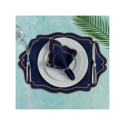 Jogo Americano Realeza 8 Peças Para Mesa De 4 Lugares Azul Bordado Dourado