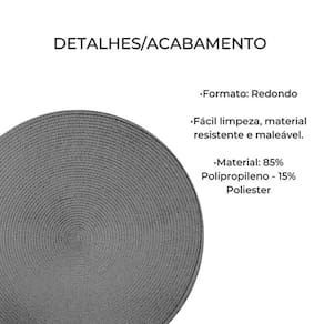 Contém: 1 unidade ========== sobre o produto ========== Eleve a sua experiência à mesa com o nosso jogo americano redondo. Com um design sofisticado e funcional, este jogo americano adiciona um toque de classe a qualquer refeição. Feito com materiais de alta qualidade, este jogo americano não só protege a sua mesa de manchas e arranhões, mas também adiciona um charme discreto à sua decoração. Com um diâmetro generoso de 38cm, oferece espaço suficiente para pratos e talheres, tornando-o ideal para refeições individuais ou compartilhadas. ========== ficha técnica ========== Unidades: 1 Cor: cinza Medidas: 38 x 38cm Material: poliester + polipropileno Marca: gira : 3 meses Estamos online para quaisquer dúvidas, Agradecemos e aguardamos o seu pedido. Ean: 7891217333523