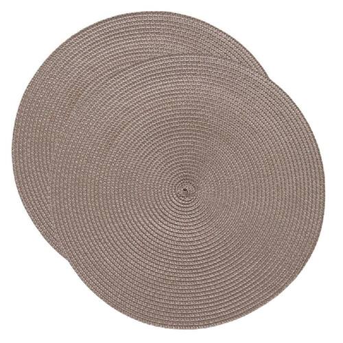 Jogo Americano Redondo na cor Taupe Composição: 75% Polipropileno 25% Poliéster Quantidade: duas 2 unidades Diâmetro: 38 cm Atenção para os Cuidados Lavar manualmente. Não alvejar. Não secar em tambor. Não passar. Não limpar a seco. Marca: Não Informado