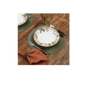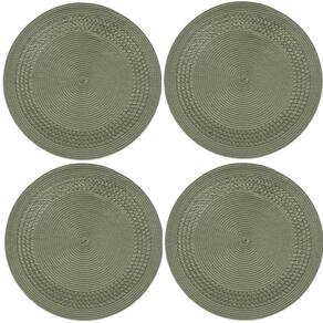 Jogo Americano redondo entrelacado 4 unidades - Verde oliva Jogo Americano Redondo Entrelacado tressê na cor verde OlivaCom uma parte transado dando um charme.Composição: 75% Polipropileno 25% PoliésterQuantidade: Quatro 4 unidadesDiâmetro: 38 cmAtenção para os CuidadosLavar manualmente.Não alvejar.Não secar em tambor.Não passar.Não lavar a seco.O produto é o jogo americano demais elementos de ambientação , são para mostrar como o item poderá ficar bonito em sua mesas, não acompanham.