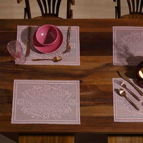 Jogo americano interlar 4 peças color rose 30cm x 44cm; o charme e a delicadeza da renda para sua mesa, proporcionando refeições mais agradáveis. Sua estampa floral traz a delicadeza da natureza, deixando o ambiente mais acolhedor.