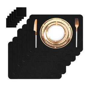 Jogo Americano Sousplat Retangular 16 Pçs Limpa Facil Couro - Preto