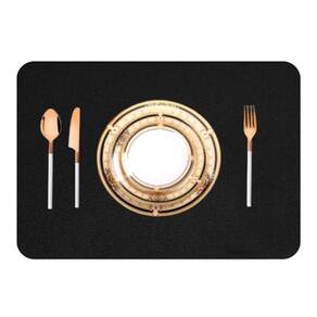 Jogo americano sousplat retangular 16 pçs limpa facil couro Cor: preto Tamano: 43x30 Jogo americano couro retangular + porta copos