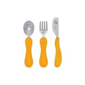 Características: Material: Aço inoxidável com cabos de silicone Formato anatômico: Facilita o uso e proporciona conforto Bordas arredondadas: Na colher e no garfo para evitar machucados Lâmina serrilhada em um lado: Na faca, especialmente projetada para evitar acidentes Resistência térmica: -20C a 120C Livre de BPA e Ftalato: Garantia de segurança alimentar Dimensões: 2 x 14,5 x 2 cm (AxCxL) Peso: 0,115 kg Idade recomendada: A partir de 3 anos