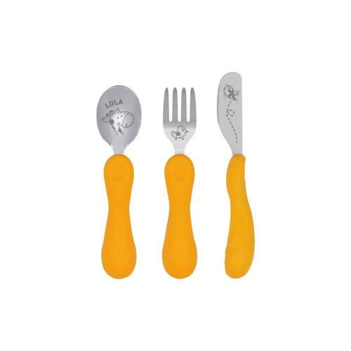O Jogo Anatômico Colher, Garfo e Faca 3Pcs da Marcus Marcus é uma excelente escolha para pais que procuram utensílios seguros e de qualidade para os seus filhos. Este conjunto é feito de aço inoxidável com cabos em silicone, proporcionando uma aderência firme e confortável para as mãos pequenas. O formato anatômico facilita a pegada, tornando as refeições mais agradáveis e seguras.