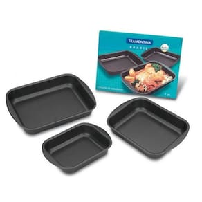 Assadeiras em alumínio com revestimento em antiaderente. Conteúdo 1 - Assadeira retangular funda 22cm 1 - Assadeira retangular funda 28cm 1 - Assadeira retangular funda 34cm Orientações Gerais Antes de usar: Lave interna e externamente a assadeira, usando apenas uma esponja macia, sabão neutro ou detergente líquido. Enxugue bem com um pano seco e unte todas as partes internas com óleo ou gordura. Leve ao fogo baixo por um ou dois minutos. Deixe a peça esfriar, lave e enxugue novamente. Durante o uso: Evite esquentar demais a assadeira vazia. Use a sua assadeira Starflon sempre em fogo baixo ou médio para reter o valor nutritivo dos alimentos e conservar o antiaderente. Evite que as chamas atinjam as laterais do assadeira. A assadeira com antiaderente não pode ser aquecida a temperaturas superiores a 350°C. Para mexer ou tirar o alimento, use somente utensílios de silicone, nylon ou madeira que não cortam e não riscam a superfície dos produtos Starflon. Nunca corte alimentos diretamente no revestimento antiaderente. Limpeza: Evite a imersão da assadeira quente em água fria. Deixe a assadeira esfriar antes de lavar. Mesmo depois de vários usos nunca utilize produtos abrasivos na lavagem da sua Starflon, como saponáceos ou palhas de aço. Se deixar queimar alimentos, deixe seu produto de molho em água durante algum tempo antes de lavá-lo. O seu produto Starflon pode ir à máquina de lavar louça. Uso seguro e adequado: Ao utilizar utensílios mantenha fora do alcance de crianças. Ao manusear utensílios quentes tenha cuidado redobrado e se necessário utilize proteção para as mãos. Para sua maior segurança ao utilizar utensílios com cabos, mantenha os mesmos sempre voltados para o centro do fogão. Benefícios do Produto 1. Assadeiras em alumínio com revestimento interno e externo em antiaderente Starflon. 2. Devido ao revestimento antiaderente os alimentos não grudam, proporcionando facilidade na limpeza. 3. Proporcionam um cozimento rápido e uniforme. 4. Design moderno e diferenciado. 5. Podem ser utilizadas no forno a gás e elétrico. 6. Podem ir à máquina de lavar louças. 7. Seguindo as instruções de uso, as assadeiras permanecerão bonitas por muito mais tempo. TR20099/020 Ean: 7891112069978