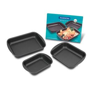 Assadeiras em alumínio com revestimento em antiaderente. Conteúdo 1 - Assadeira retangular funda 22cm 1 - Assadeira retangular funda 28cm 1 - Assadeira retangular funda 34cm Orientações Gerais Antes de usar: Lave interna e externamente a assadeira, usando apenas uma esponja macia, sabão neutro ou detergente líquido. Enxugue bem com um pano seco e unte todas as partes internas com óleo ou gordura. Leve ao fogo baixo por um ou dois minutos. Deixe a peça esfriar, lave e enxugue novamente. Durante o uso: Evite esquentar demais a assadeira vazia. Use a sua assadeira Starflon sempre em fogo baixo ou médio para reter o valor nutritivo dos alimentos e conservar o antiaderente. Evite que as chamas atinjam as laterais do assadeira. A assadeira com antiaderente não pode ser aquecida a temperaturas superiores a 350°C. Para mexer ou tirar o alimento, use somente utensílios de silicone, nylon ou madeira que não cortam e não riscam a superfície dos produtos Starflon. Nunca corte alimentos diretamente no revestimento antiaderente. Limpeza: Evite a imersão da assadeira quente em água fria. Deixe a assadeira esfriar antes de lavar. Mesmo depois de vários usos nunca utilize produtos abrasivos na lavagem da sua Starflon, como saponáceos ou palhas de aço. Se deixar queimar alimentos, deixe seu produto de molho em água durante algum tempo antes de lavá-lo. O seu produto Starflon pode ir à máquina de lavar louça. Uso seguro e adequado: Ao utilizar utensílios mantenha fora do alcance de crianças. Ao manusear utensílios quentes tenha cuidado redobrado e se necessário utilize proteção para as mãos. Para sua maior segurança ao utilizar utensílios com cabos, mantenha os mesmos sempre voltados para o centro do fogão. Benefícios do Produto 1. Assadeiras em alumínio com revestimento interno e externo em antiaderente Starflon. 2. Devido ao revestimento antiaderente os alimentos não grudam, proporcionando facilidade na limpeza. 3. Proporcionam um cozimento rápido e uniforme. 4. Design moderno e diferenciado. 5. Podem ser utilizadas no forno a gás e elétrico. 6. Podem ir à máquina de lavar louças. 7. Seguindo as instruções de uso, as assadeiras permanecerão bonitas por muito mais tempo. TR20099/020 Ean: 7891112069978