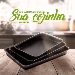 Jogo de Assadeiras Forma Retangulares 03 Peças Antiaderentes Marcolar