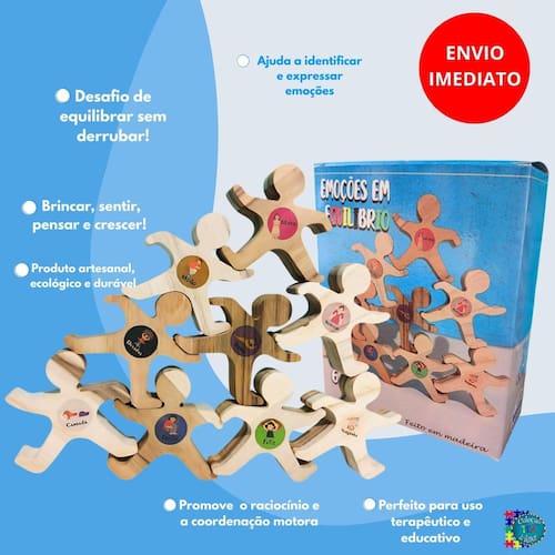 Jogo Atividade 11 Equilibristas das Emoções para Crianças Jogo Atividade 11 Equilibristas das Emoções para Crianças Apresentamos o Jogo Equilibristas das Emoções , uma experiência lúdica e educativa pensada com carinho e propósito para crianças autistas. Mais do que um simples brinquedo, este jogo é uma ferramenta poderosa no desenvolvimento emocional e cognitivo, proporcionando momentos de aprendizado, concentração e diversão em família ou em terapias. Composto por 6 peças em madeira, cada uma lindamente personalizada com diferentes emoções - como alegria, tristeza, raiva, medo e felicidade- o jogo convida a criança a reconhecer, nomear e compreender sentimentos, promovendo o autoconhecimento e a empatia desde cedo. Cada peça foi cuidadosamente desenhada para ser empilhada e equilibrada sobre as outras, criando um desafio que estimula a coordenação motora fina, o raciocínio lógico e o foco, ao mesmo tempo em que trabalha aspectos emocionais de forma acessível e intuitiva. O grande diferencial do Emoções em Equilíbrio é sua proposta de unir o lúdico ao educativo: a criança se diverte tentando equilibrar as peças, mas ao mesmo tempo está sendo incentivada a observar as expressões, conversar sobre o que sente e aprender a identificar essas emoções no outro - algo fundamental para o desenvolvimento social e afetivo, especialmente no espectro . Fabricado com madeira de alta qualidade e acabamento seguro, o jogo é durável, resistente e pensado para mãos pequenas. É um recurso valioso para pais, educadores e terapeutas que buscam uma abordagem afetiva, criativa e prática para trabalhar as emoções no dia a dia. Ao adquirir o Jogo Cognitivo Emoções em Equilíbrio, você está investindo em um brinquedo que ensina, conecta e transforma. Porque brincar também é uma forma de cuidar. Características do Produto : Material : Madeira Qtde de peças : 11 Peças Homologação Inmetro: ABCP-BRI-0078-2021-29 Marca: Não Informado
