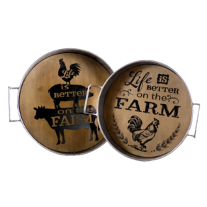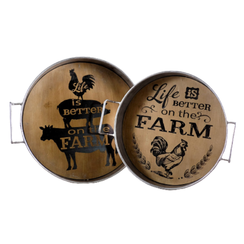 Jogo Bandejas Redondas Metal e Madeira 31cm e 27cm