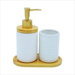 Sofisticação nos detalhesO Kit Lavabo Frisado é sinônimo de requinte e modernidade. Seu design elegante conta com relevos horizontais simétricos, criando um efeito visual sofisticado e harmonioso. O acabamento fosco adiciona um toque de luxo, enquanto a base de bambu traz equilíbrio e aconchego.Destaques desse modelo:-Textura frisada horizontal- um toque moderno e sofisticado-Acabamento fosco premium - discreto, elegante e atemporal-Base de bambu sustentável - charme e harmonia para o ambienteIdeal para quem busca um lavabo elegante, organizado e cheio de estilo.Especificações Técnicas:Cor: Preto- Porta Sabonete LíquidoMaterial: Porcelana e BambuMedidas Aproximadas: Altura: 12 cm x Diâmetro: 7cm- Porta ObjetosMaterial: PorcelanaMedidas Aproximadas: Altura: 10 cm x Diâmetro: 7cm- Bandeja:Material: BambuMedidas Aproximadas: Altura: 0,9 cm x Largura: 9 cm x Comprimento: 17 cmImagens IlustrativasComposição da Embalagem:1 Porta Sabonete Líquido1 Porta Objetos1 Bandeja Marca: Não Informado Ean: 7901010100021