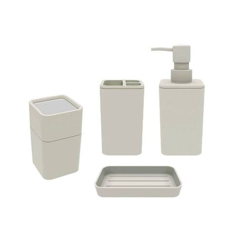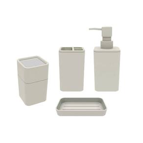 Contêm: 1 Dispenser Líquido Medidas: 17 x 7 cm 1 Porta Escovas Medidas: 11,3 x 7 cm 1 Porta Algodão Medidas: 11,3 x 6,8 cm 1 Saboneteira Medidas: 14,3 x 7,3 x 2,5 cm Material: Polipropileno Casacha é uma loja virtual com artigos de organização para casa, escritório, banheiro e lavanderia.