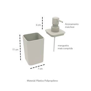 Acessórios para banheiro, saboneteira, porta sabonete liquido, porta escova de dentes e algodão. Porta Sabonete líquido tem acionamento mais leve e eficaz, maior durabilidade com pump em plástico na cor do produto. O porta escova com divisória removível que facilita a higienização. Maior espaço interno, para os cremes dentais com embalagens maiores. Ideal para tornar seu banheiro ou escritório mais moderno e eficiente. Produzido em polipropileno resistente, livre de Bisfenol A (BPA Free) e não enferruja. Utilize também como Dispenser para Álcool Gel.