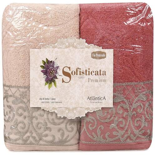Detalhes do produto jogo de banho 5pçs atlântica imperial tipo de produto: jogo de banho material: algodão composição: 97% algodão 3% poliéster número de peças: 5 lavagem e conservação: processo de lavagem normal com temperatura máxima de 40c, não alvejar, secagem em tambor com temperatura até 50c, passadoria com máximo de 110c, não limpar a seco, secagem à sombra, limpeza a úmido profissional normal. Conteúdo da embalagem: 2 toalhas de banho de 80x140cm, 2 toalhas de rosto de 50x80cm e 1 toalha de piso de 50x75cm tamanho toalha de banho: 80x140cm tamanho toalha de rosto: 50x80cm tamanho piso: 50x75cm características especiais: toalhas de piso com antiderrapante Ean: 7892023087280