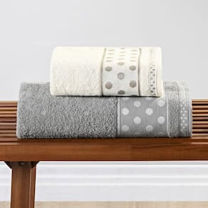 Jogo de Banho Meggy Poá Bolinhas Toalhas Macias 100% Algodão 5 Peças - Cinza Granito e Pérola Descubra o toque macio e o design elegante do Jogo de Banho Meggy Poá. Composto por 5 peças essenciais - 2 Toalhas de Banho, 2 Toalhas de Rosto e 1 Piso, este conjunto foi pensado para elevar a sua experiência diária de autocuidado, proporcionando conforto e sofisticação.