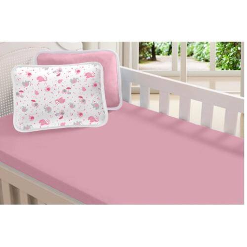 Jogo Berço Bebê Lençol Fronha Malha 100% Algodão Elefante