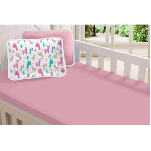Jogo Berço Bebê Lençol Fronha Malha 100% Algodão Lhama