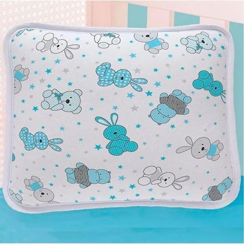 Jogo Berço Bebê Lençol Fronha Malha Animais Azul