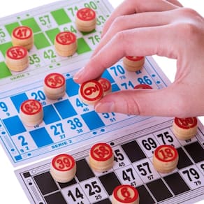 JOGO BINGO 90 PEDRAS DE MADEIRA NUMERADAS NA CARTELA MARCADORES - IM42068.