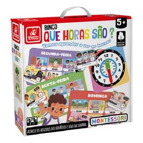 O Bingo – Que Horas São? traz toda a diversão de um jogo de bingo somada a uma mecânica que auxilia as crianças a aprenderem a ver as horas e a associar os horários e afazeres dos dias da semana. Além do jogo de bingo, mais duas atividades podem ser feitas: As crianças podem utilizar a cartela de treinamento, na qual elas podem brincar livremente montando um dia com seus próprios afazeres, são 42 peças com sugestões de afazeres comuns do cotidiano das crianças; e utilizando o relógio analógico que acompanha o produto, as crianças podem aprender a ver as horas. Esse brinquedo auxilia no desenvolvimento da coordenação motora, da percepção visual e da interação social. A partir dos princípios do método Montessori, esse brinquedo auxilia também no desenvolvimento da autonomia das crianças, pois elas podem aprender por si só, sem nenhuma ou com mínima intervenção de um adulto.Idade mínima recomendada: 5 anos.Número máximo de jogadores: 7.Desenhado por Relógio analógico.Dimensões: 43 cm de comprimento, 51 cm de largura e 4 cm de altura.Estimula e aumenta sua inteligência.As imagens podem ser ilustrativas.
