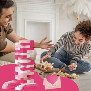 Material: madeira Cor: transparente Cor Tamanho do pacote: 23,8 × 15,8 × 4,6 cm Peso da embalagem: 0,68 kg Lista de embalagem: 1 x Block Tower Game Design de jogo para casais românticos — Este colorido jogo de torre de blocos foi especialmente desenvolvido para casais, combinando jogabilidade clássica de empilhamento com desafios românticos para incentivar a comunicação, o riso e a união emocional durante encontros noturnos. Blocos de comando interativos — Cada bloco de madeira apresenta instruções divertidas e íntimas que os casais devem completar após o desenho, transformando cada movimento em uma surpresa divertida e criando momentos memoráveis juntos. Estrutura de madeira estável — Feitos de madeira natural de alta qualidade com proporções precisas, os blocos são lisos, duráveis e bem balanceados, garantindo um empilhamento estável e uma experiência tátil premium. Espaço personalizado criativo — Os blocos em branco permitem que os casais escrevam seus próprios desafios ou mensagens de amor, adicionando um toque personalizado que torna cada jogo único, significativo e cheio de rituais emocionais. Embalagem pronta para presente — vem em uma elegante caixa de presente rosa, sem necessidade de embalagem extra, tornando-a um presente romântico perfeito para aniversários, Dia dos Namorados, aniversários ou ocasiões especiais para casais.