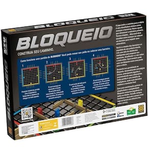 O jogo onde o caminho para a vitória é uma desafiadora mistura entre avanço e barreiras. Vence aquele que atravessar o tabuleiro primeiro. Parece simples... Mas você deve escolher entre avançar ou colocar uma barreira para impedir seus adversários. Você é o mestre das barreiras e o arquiteto do seu próprio triunfo. Crie uma teia de obstáculos inteligentes para enganar seu oponente, desafiando-o a dar voltas e mais voltas. Você também pode usar um bloqueio como uma ponte para a vitória. Desperte sua genialidade no Bloqueio, desenvolvendo estratégias únicas, antecipando jogadas e surpreendendo seus adversários. Cada partida é uma batalha de inteligência, onde suas decisões moldam o resultado final. Com uma combinação perfeita de simplicidade e complexidade, Bloqueio conquista jogadores de todas as idades. Com barreiras produzidas em MDF, idade mínima partir de 8 anos, de 2 a 4 participantes e com o tempo estimado de jogo de 15 minutos.