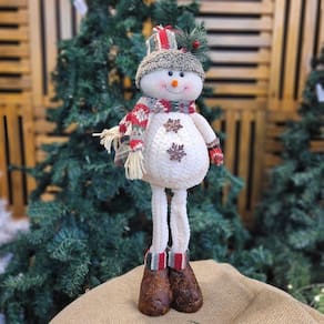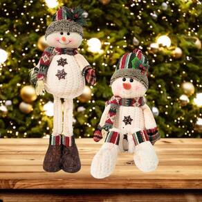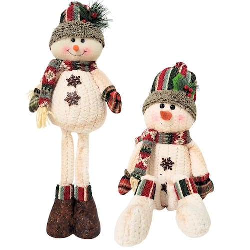 Jogo 2 Bonecos de Neve Sentado Perna Mole e Em Pé Decorativo