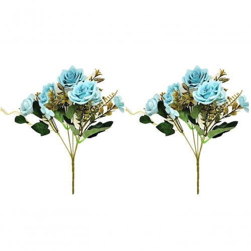 -02 Buqu?s Mini Rosa Azul Tiffany Artificial com 5 galhos (flores) cada buqu? 30cm;