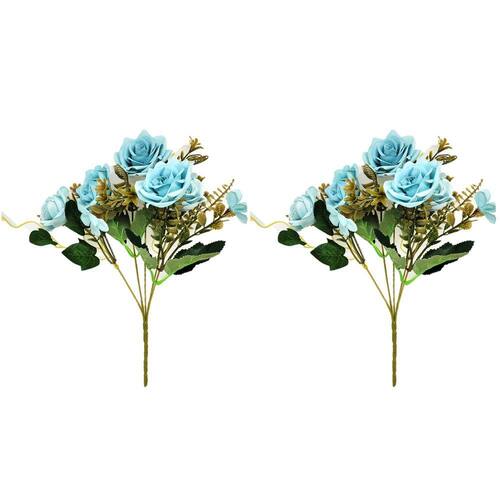 -02 Buquês Mini Rosa Azul Tiffany Artificial com 5 galhos (flores) cada buquê 30cm;