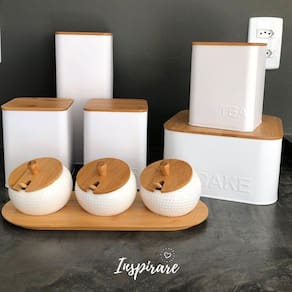 Jogo c/3 Latas Branca Relevo Tampa em Bambu