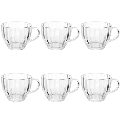 Características: - Marca: Hauskraft - Modelo: Alice - Material: Vidro - Capacidade: 220 ml cada - Quantidade: 6 xícaras - Cor: Transparente - Design: Clássico e elegante