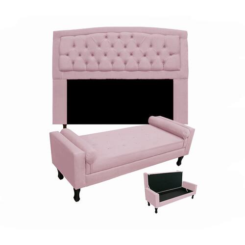 Jogo Cabeceira Geovana + Calçadeira Fênix Casal 140cm Suede Rosa Bebe - LM DECOR