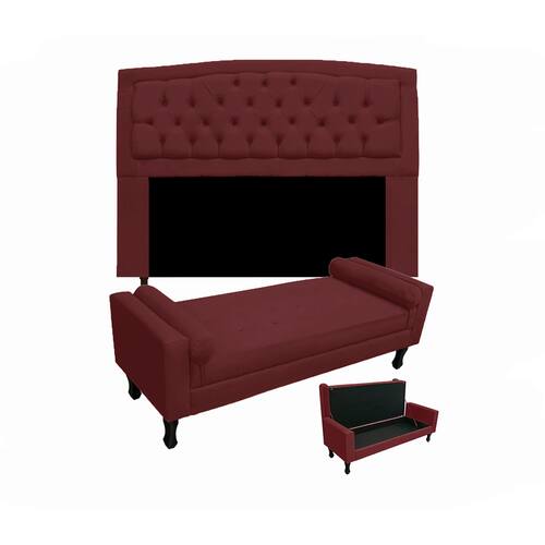 Jogo Cabeceira Geovana + Calçadeira Fênix King 195cm Suede Vermelho Bordo - LM DECOR