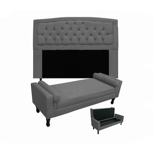 O Conjunto Geovana + Fênix é o kit perfeito para seu quarto, possui um modelo único e totalmente diferenciado, que vai levar um toque de aconchego e charme final que seu quarto tanto precisa. Uma ótima composição para deixar seu quarto mais luxuoso e organizado podendo colocar cobertas, travesseiros ou sapatos dentro no baú. Produtos com estrutura de madeira de eucalipto, ecologicamente correto, espuma de poliuretana, revestimento em Suede.