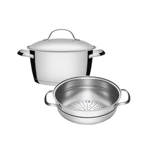 Jogo de Caçarola Funda + Cozi-Vapore Allegra 20 cm 3,1 L em Aço Inox Fundo Triplo TramontinaSua cozinha ficará completa com a linha de panelas Allegra. Elas apresentam fundo triplo (aço inox + alumínio + aço inox), tecnologia que distribui o calor uniformemente, cozinhando os alimentos mais rápido e economizando energia. São peças de muito bom gosto e totalmente produzidos em aço inox. Elas embelezam sua cozinha dando um toque de elegância e estilo. O design moderno também traz tampa com saída de vapor e encaixe perfeito, facilitando o uso. Ideal para as tarefas do dia-a-dia ou para aquela reunião com pessoas especiais. As peças ainda são muito versáteis, podendo ir ao forno e em diferentes tipos de fogões, inclusive no de indução.