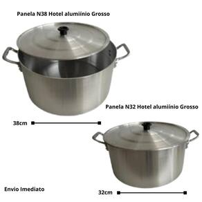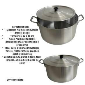 Jogo Caçarola Industrial 32/38 Alumínio Grosso Panela Hotel Kit de Panela Hotel nº 32/38 - Alumínio Industrial Grosso Polido com Alças em Alumínio Fundido Este Kit de Panela Hotel é ideal para em cozinhas industriais e comerciais. Fabricado em alumínio de alta qualidade, com espessura reforçada, oferece durabilidade, resistência e excelente condução de calor. Seu acabamento polido proporciona um visual sofisticado e facilita a limpeza, enquanto as alças em alumínio fundido garantem maior segurança e praticidade no manuseio. Características: Material: Alumínio industrial grosso, polido Tamanhos: 32 e 38 cm Alças: Alumínio fundido, garantindo maior resistência e ergonomia Ideal para: Cozinhas industriais, hotéis, restaurantes e grandes estabelecimentos Benefícios: Alta durabilidade, fácil limpeza, ótima distribuição de calor Marca: Não Informado Ean: 7894805761609