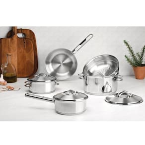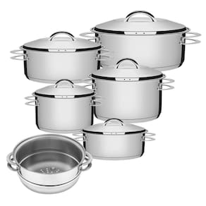 Jogo de Caçarola Solar 5 Peças + Cozi-Vapore Solar em Aço Inox Fundo Triplo Tramontina - Na sua casa!