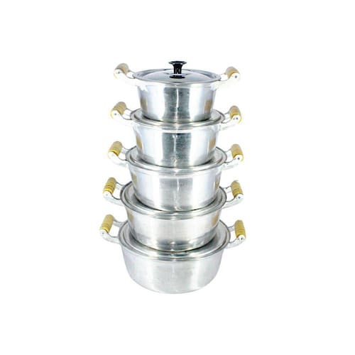 Jogo Caçarolas Alumínio Fundido Polida Alça Madeira 16 a 24