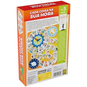 Linha brincando & aprendendo growcada coisa na sua hora ajuda as crianças a entenderem a relação entre horários e suas rotinas diárias. Um jogo que oferece uma oportunidade excelente para entender sua importância do gerenciamento do tempo e da autonomia. Com uma variedade de cartas ilustradas com atividades cotidianas e as roletas com perguntas, as crianças podem personalizar a montagem de sua própria rotina. Por exemplo, ao girar a roleta, a criança pode ser desafiada com perguntas como: a que horas você toma café da manhã. Ela, então, seleciona a ilustração correspondente e a encaixa no relógio.A partir de 5 anosparticipantes: 1 ou maiscontém: 1 relógio cartonado, 30 peças ilustradas, 2 roletas e 2 setas. Homologação Inmetro: CE-BRI/ICEPEX-N 01264-25-19 Marca: Não Informado