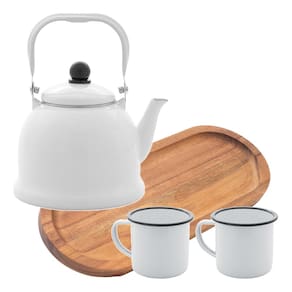 01 x Chaleira 1700ml 02 x Canecas 150ml 01 x Bandeja de Acacia