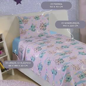Jogo Cama 100% Microfibra 3 Peças Angel Stitch Disney Rosa